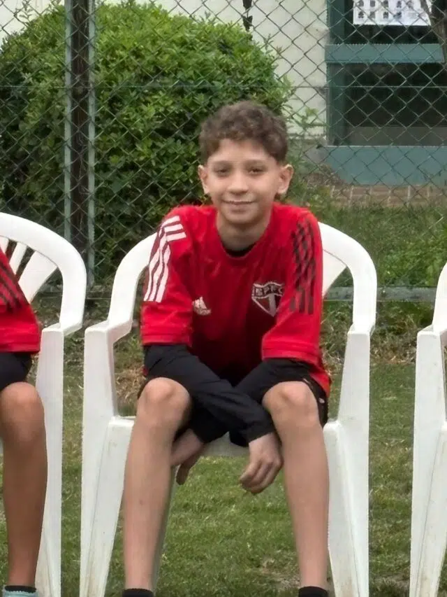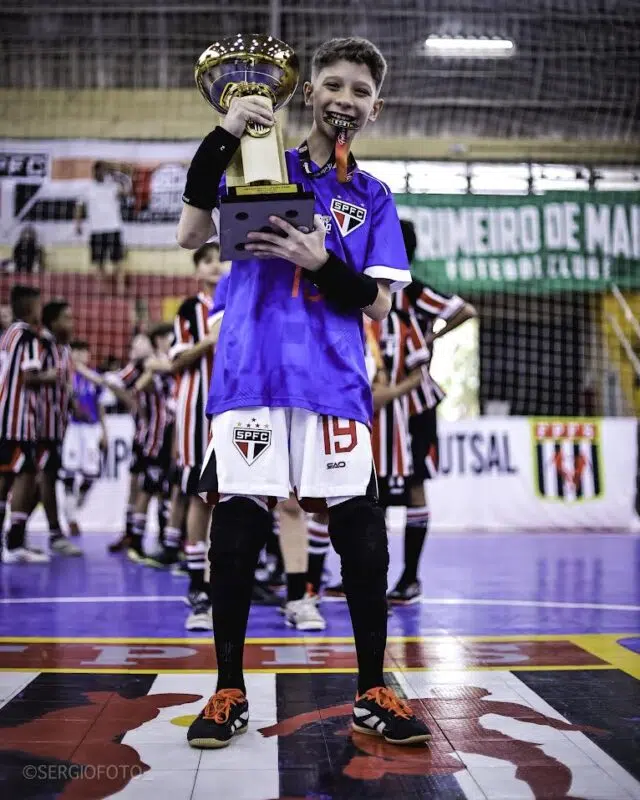 Goleiro desde os 8 anos, Caio joga na série prata de futsal do SPFC e na seleção sub-12 de futebol social SPFC.